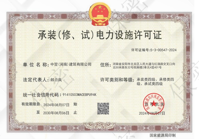 20.電力工程施工總承包貳級;