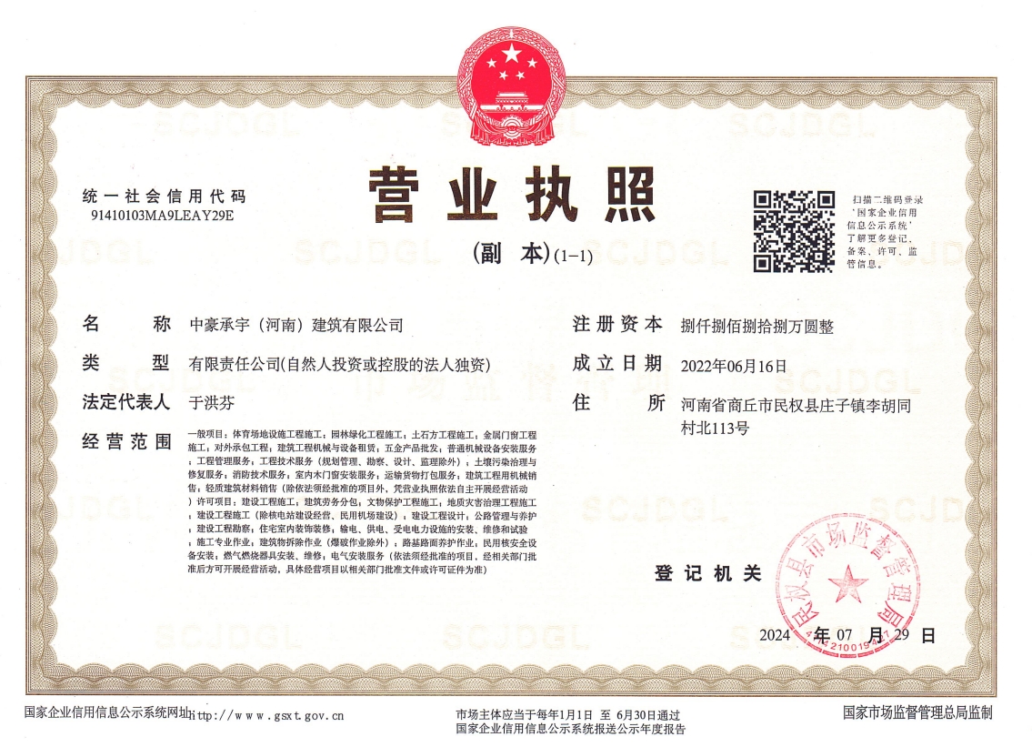 企業名稱:中豪承宇(河南)建筑有限公司